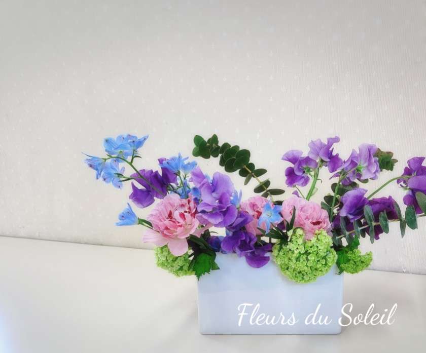 なかなかご紹介できていなかった、まだ生き生きとした春のお花で制作いただいた