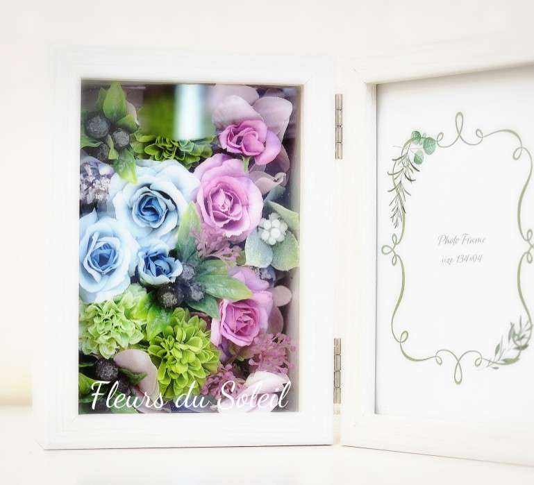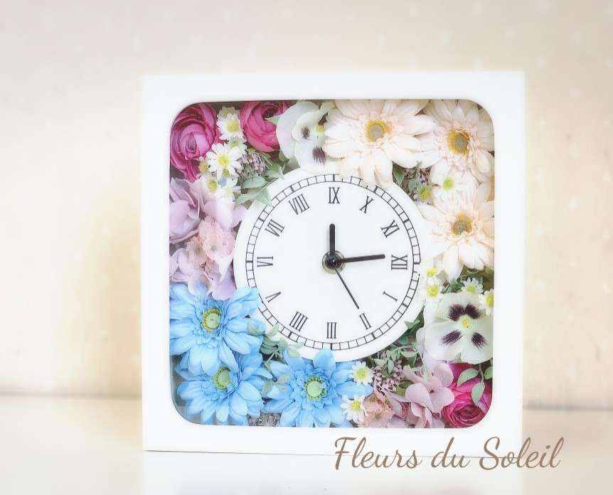 アーティフィシャルフラワー/フォトフレーム&クロックフレーム 2025/05/16 あっという間にGWも終わっちゃいましたね~ 皆さま、それぞれに楽しいGWを過ごされたことと思います お仕事だった方以外は、、笑 そして、このGW 生徒さんのお一人がご結婚されました♪ おめでとうございます!! ご結婚前に、何か記念になるものをレッスンでつくりたい! というお話があり・・ フォトフレームとクロックフレームを制作していただきました~ お色の方は、生徒さんのご希望でブルーとピンクで♪ それぞれ丁寧に、本当にきれいに仕上げていただきました! 新しい生活に記念になるものが出来てよかったです♪ ご結婚本当におめでとうございます♪