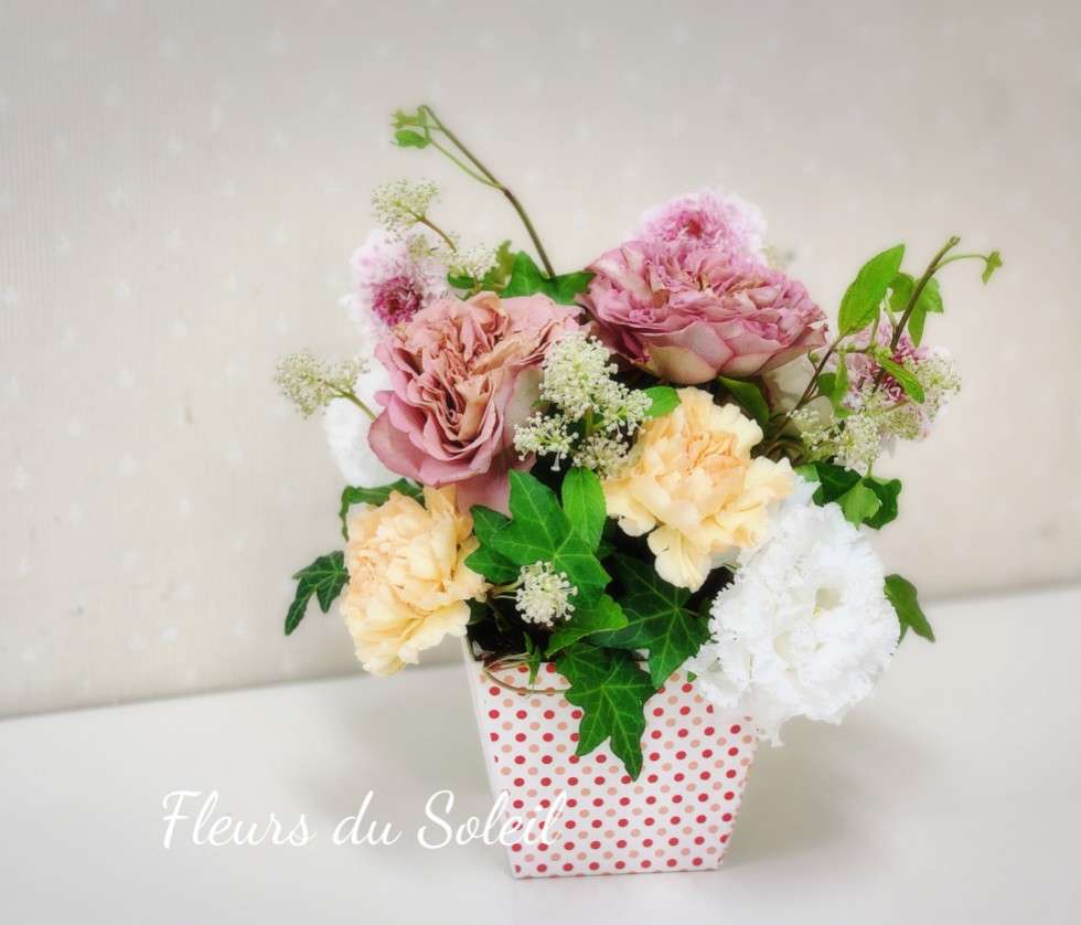 母の日月間/セゾンコースのアレンジメント♪ 2025/06/03 セゾンコースでは、母の日のギフトをテーマにアレンジメントを制作いただきました♪ 360度展開のアレンジメントをつくる際 まだ慣れないうちはどうしても正面をつくりがち、、 どこから見ても正面になるように・・ 難しいですが意識しながらお花を配置していくことが大切です! 途中何度かアドバイスさせていただきながら 最後にはどこから見ても360度きれいなアレンジメントが完成しました! お疲れさまでした♪
