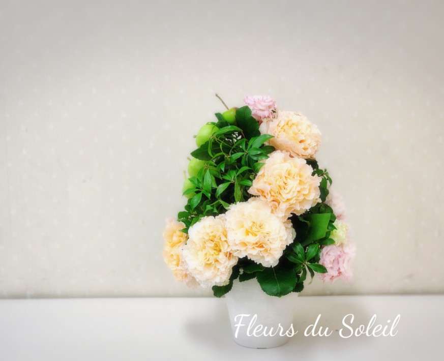ヨーロピアンコース/スパイラルコーン 2025/07/03 ヨーロピアンコースのレッスンでは、コーンを制作いただきました スパイラルのデザインで! 写真では一方向からだけしかお見せできないのが残念ですが 3種のお花とグリーンで、360度美しいスパイラルでデザインされています 手順一つ一つ、お花一本一本丁寧なお仕事だったという証ですねー お疲れさまでした♪