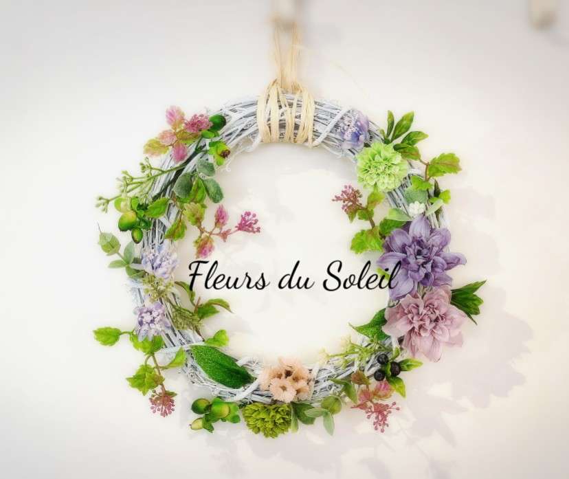 アーティフィシャルフラワー1dayレッスンにお越しいただきました 2025/07/09 昨日は大阪でも突然の大雨が降りました 幸いギリギリセーフッのタイミングでびしょ濡れにはならなかったんですが これからしばらく突然の雨には要注意!ですね さて先日 アーティフィシャルフラワーの1dayレッスンにお越しいただきました 制作いただいたリース♪ お聞きしたところ、アレンジ経験はほとんどない・・とのことでしたが 製作過程もスムーズで、結果すごくかわいい仕上がりのリースが出来上がりました~ ご本人にも気に入っていただけたようでよかったです♪