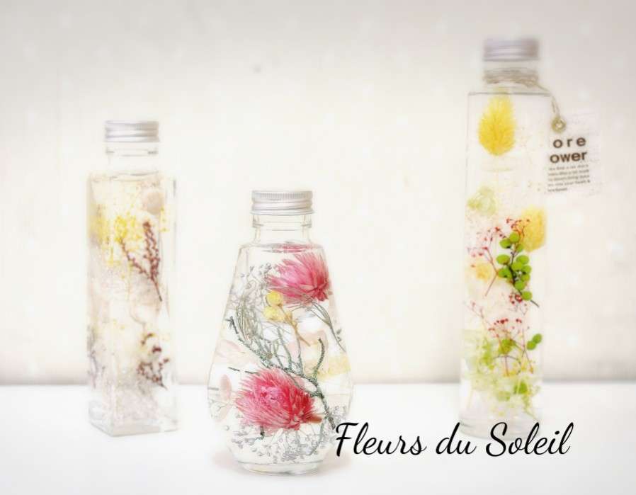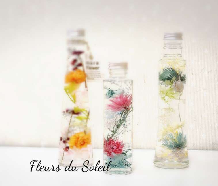 夏のハーバリウムレッスン♪ 2025/08/02 8月に入りました 今日も朝から暑いですー、、、 一日に何回「暑い~っっ」って言ってるのかな?? そんな日はまだまだ続きそうですが 今日も一日がんばりましょ! レッスンでは、夏にぴったりなハーバリウムを制作いただきました♪ 久しぶりのハーバリウムレッスンでしたが やっぱりこの透明感♪ 涼しげですね~ ハーバリウム制作は初めての方々でしたが とても美しく仕上げていただけました♪ お疲れさまでした