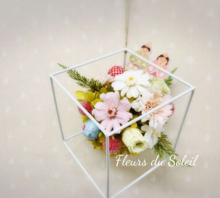 プリザーブドフラワー/ハンギングオブジェ 2026/04/09 今日は朝、アトリエ近くに最近オープンしたパン屋さんへ♪ パン好きなのでどうしても導かれます、、笑 迷いながらいくつかget!! 初めてなので後でいただくのが楽しみです笑 少し前のレッスン作品になります プリザーブドフラワーで制作いただいたおひな祭りのハンギングオブジェです♪ 一ヶ月以上過ぎてしまって今頃、、、 季節感なくすみませんっ ただ、お雛様はピックなので、外していただくと季節関係なく 普通のハンギングオブジェとしてお飾りいただけるようになってます! かわいく出来ました~♪